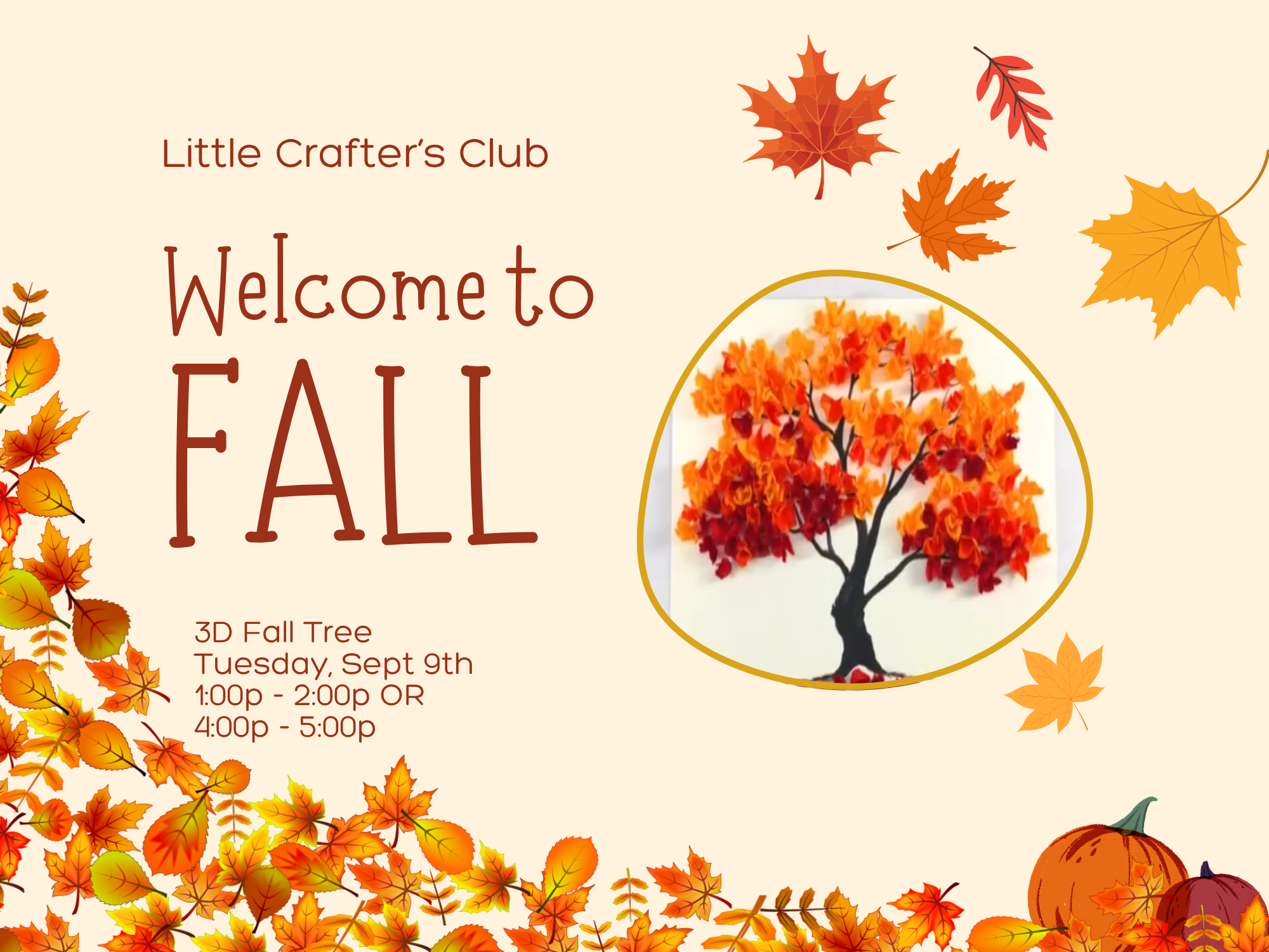 In this class, crafters will create 3D fall tree paintings to get your house in the fall mood! Due to limited space, this is a drop-off class for crafters ages 4-10.