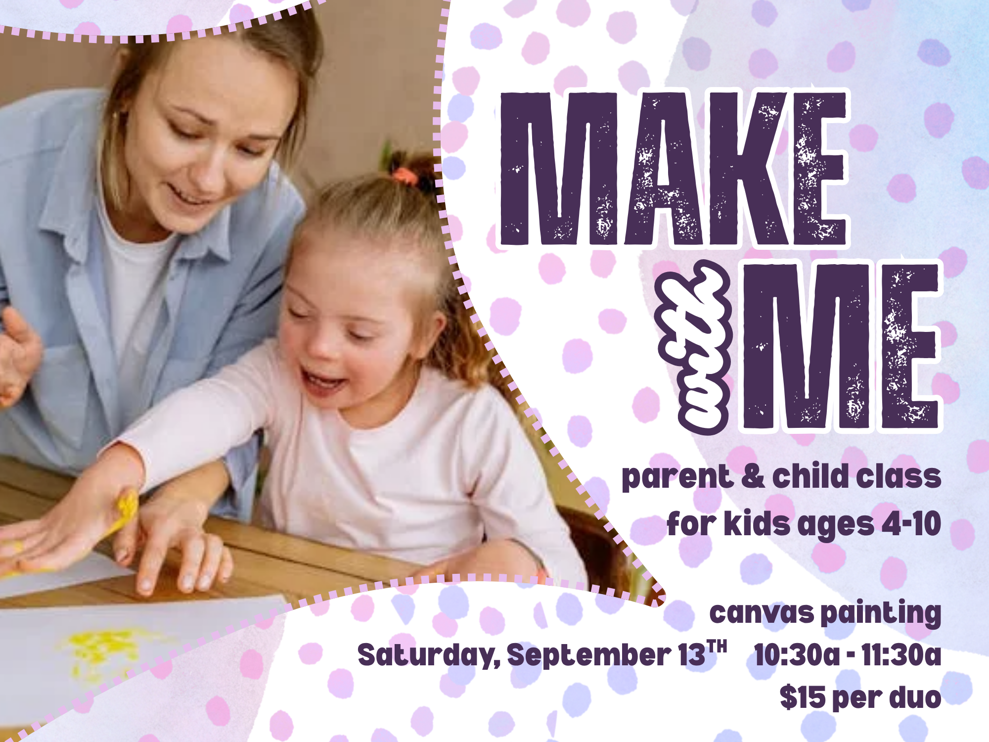 Come paint a two-part canvas with your little crafter! This class is a great way to spend some time together and take home something extra special to put on the walls at home. This class is for crafters ages 4-10.